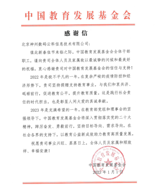 近期,K8凯发一触即发万象城AWC(中国)收到中国教育开展基金会的感谢信,以感谢K8凯发一触即发万象城AWC(中国)2022年在职业教育领域的贡献和实践,尤其是在全国职业院校大赛(中高职组)中对大赛顺利召开所付出的努力。